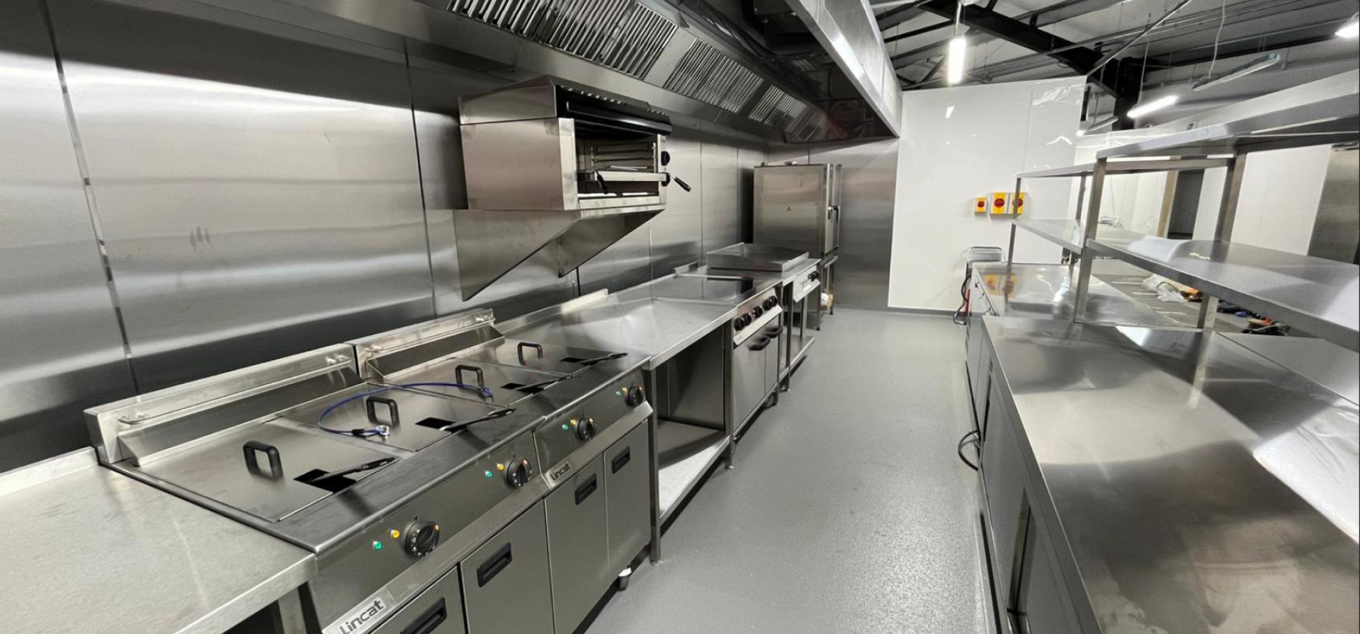 One of the key components of this project was the fabrication and installation of the extraction canopy and ductwork system, which was routed through the roof. This system was designed in-house to efficiently handle the kitchen ventilation needs. Gary and Belinda opted for electrical cooking equipment over gas, which our engineers installed and completed the electrical testing for optimal performance and compliance with safety standards.