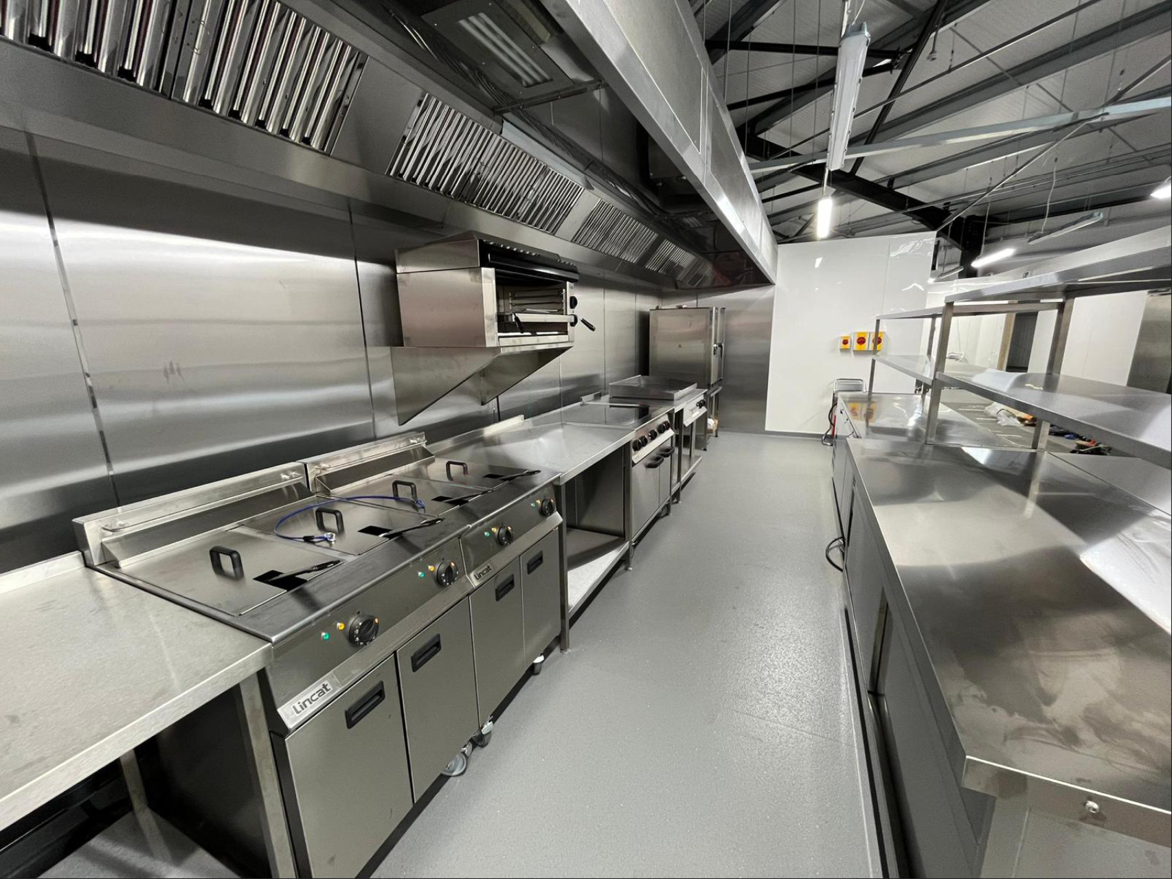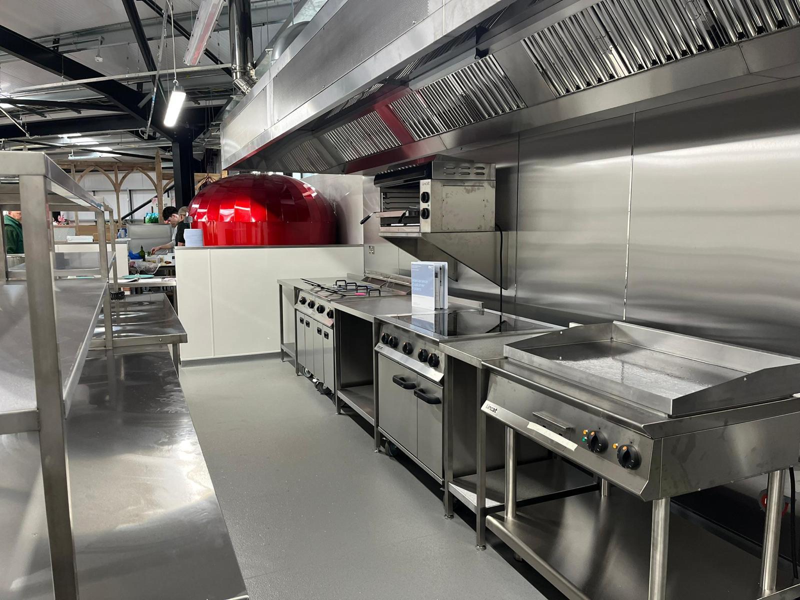 One of the key components of this project was the fabrication and installation of the extraction canopy and ductwork system, which was routed through the roof. This system was designed in-house to efficiently handle the kitchen ventilation needs. Gary and Belinda opted for electrical cooking equipment over gas, which our engineers installed and completed the electrical testing for optimal performance and compliance with safety standards.
